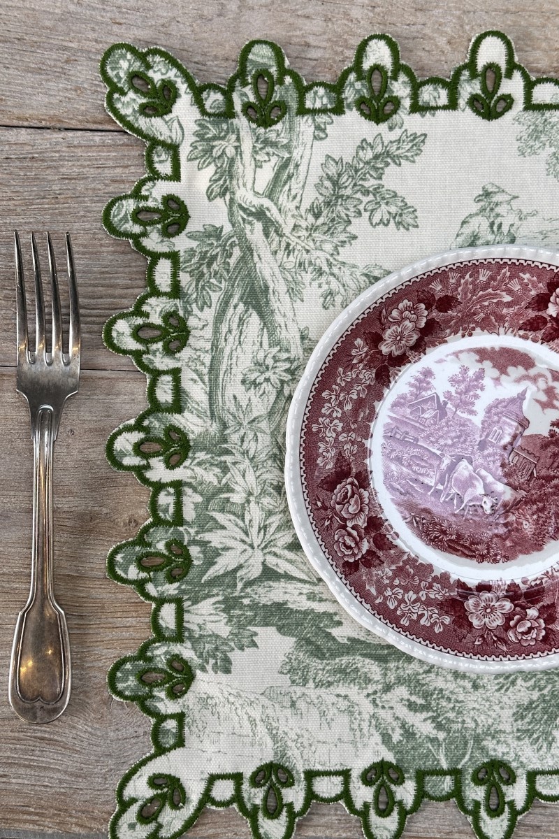 Placemat in pure stain-treated linen, intricately embroidered in a contrastingrelief color on the edge. Perfect for elegantly setting a breakfast or lunch table,butalso exquisite layered over an Amalfi tablecloth with a richly embroidered border inthe same motif to set a table suitable for any event. Complete your setting withcoordinated napkins. The Amalfi placemat is very easy to clean as it benefits from ourspecial stain-resistant treatment
