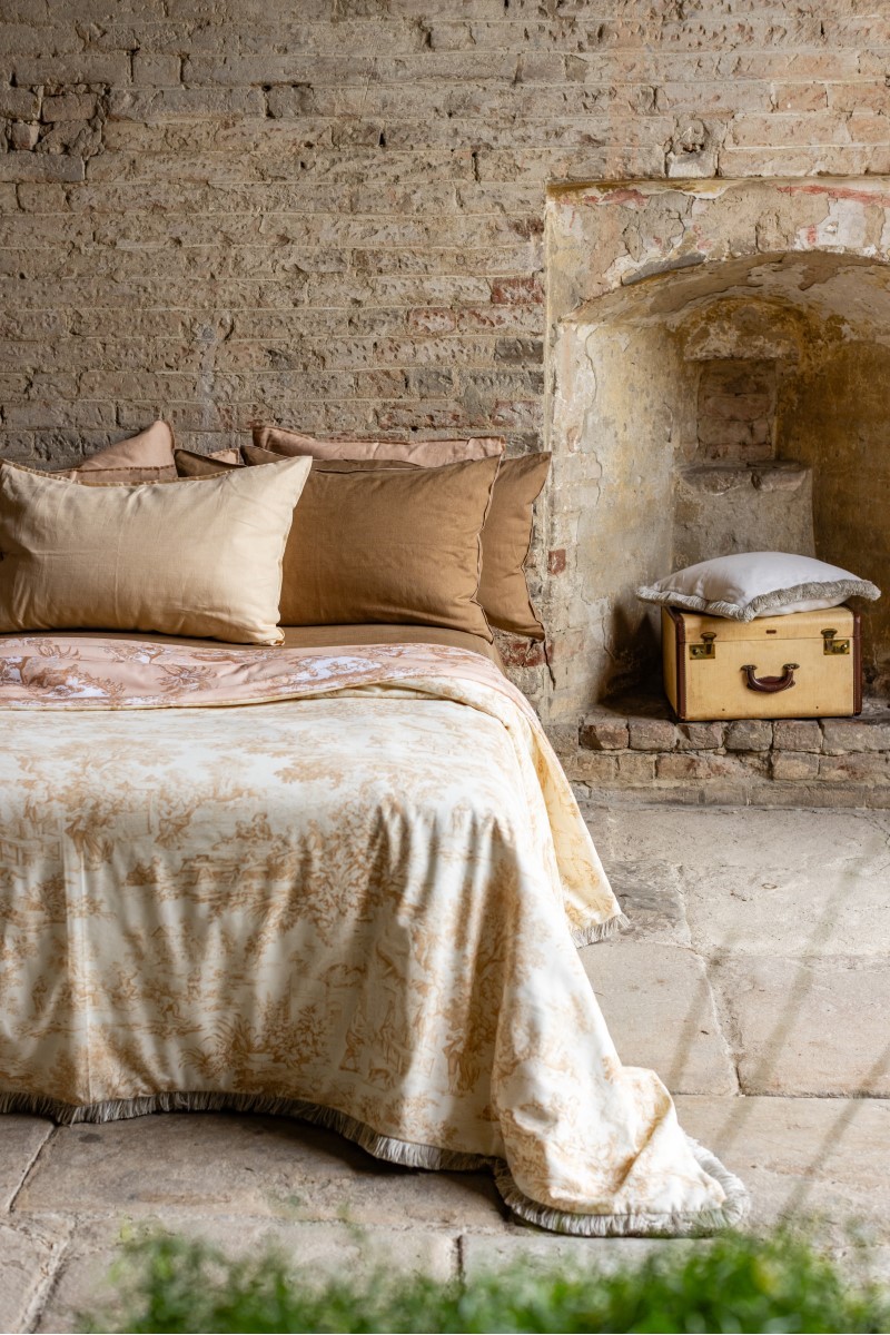 Les couvre-lits de la ligne Pure de Borgo Delle Tovaglie sont des produits polyvalents qui vous accompagneront longtemps. Bicolores et réversibles, ils sont conçus pour que vous puissiez, d'un simple geste, changer l'aspect de votre lit de manière polyvalente. Vous pouvez les combiner avec des draps et des oreillers en lin dans les mêmes tons ou dans des combinaisons uniques qui reflètent votre goût, à choisir dans notre vaste gamme de couleurs. Fabriqués à la main en Italie, ils sont remplis de Dacron doux et chaud. Disponibles en deux poids : 120 g/m² et 200 g/m², ils conviennent à toutes les saisons. Ils sont fabriqués à la main dans notre atelier de Bologne, avec des tissus et des finitions de qualité supérieure, et peuvent également être réalisés sur mesure, comme la plupart de nos produits. L'entretien est rapide et facile car il ne nécessite pas de repassage ! Il ne vous reste plus qu'à vous détendre et à faire de beaux rêves.