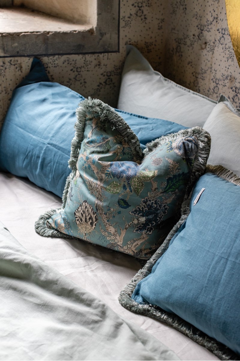 Élégante taie d'oreiller finie sur le profil par une élégante frange de couleur assortie. Cette taie d'oreiller est idéale pour rénover un canapé ou un fauteuil ou pour ajouter une touche d'élégance à votre lit. Grâce à la richesse des couleurs des franges, elle se marie élégamment avec de nombreux coloris de nos collections.