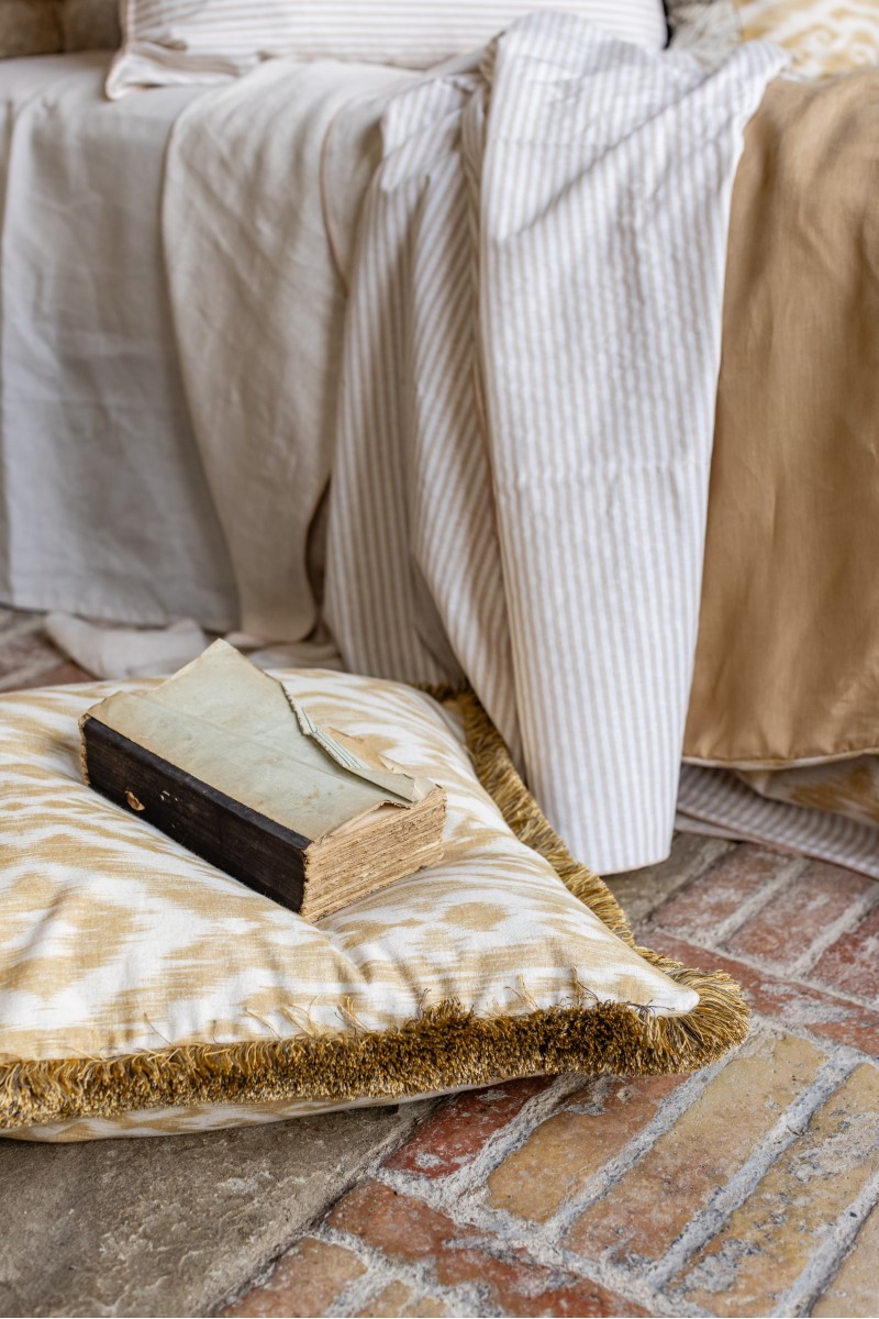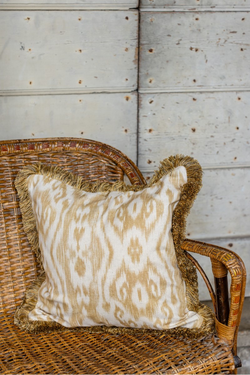 Élégante taie d'oreiller finie sur le profil par une élégante frange de couleur assortie. Cette taie d'oreiller est idéale pour rénover un canapé ou un fauteuil ou pour ajouter une touche d'élégance à votre lit. Grâce à la richesse des couleurs des franges, elle se marie élégamment avec de nombreux coloris de nos collections.