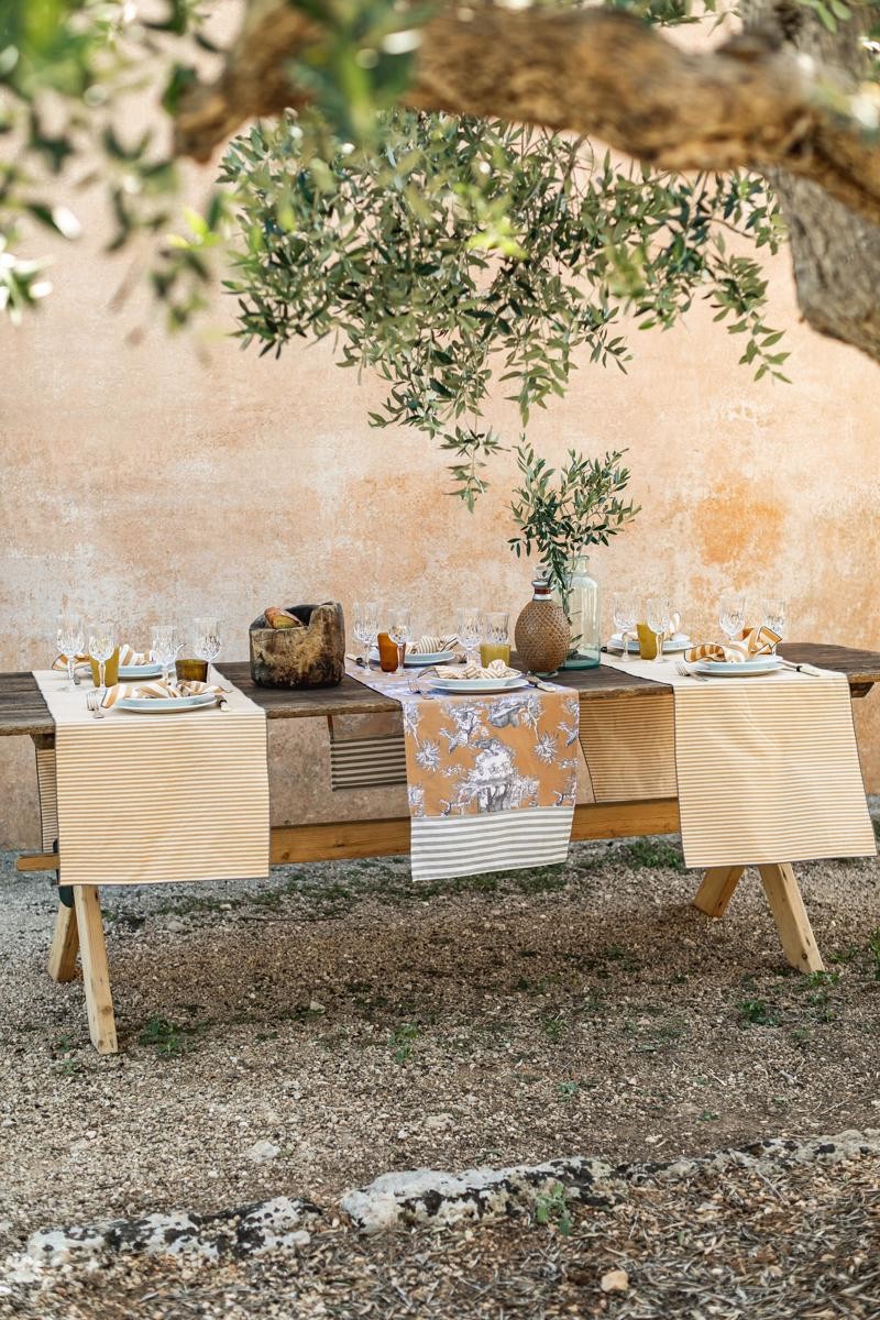 Avec des lignes essentielles et élégantes inspirées de la philosophie du Bauhaus, les chemins de table de cette ligne sont fabriqués à la main en Italie à partir d'un tissu antitache pratique et élégant, avec une bordure contrastée. Ils sont disponibles dans de nombreuses combinaisons de couleurs. Le chemin de table est une idée fraîche et créative pour une décoration de table moderne et inhabituelle qui s'avère être l'accessoire parfait pour dresser une petite table ou une partie d'une grande table, par exemple pour un dîner en tête à tête. Il a la grande vertu de protéger votre table sans la cacher. Utilisé dans le sens de la longueur au centre de la table, le chemin de table devient également un élément décoratif. De plus en plus présent dans les pages des magazines de décoration, il constitue une alternative à la nappe classique. Le chemin de table a déjà conquis nos cœurs : c'est pourquoi nous vous en proposons une large gamme, pour agrémenter votre table d'une touche personnelle. Jouez avec les couleurs et leurs superpositions en associant les chemins de table à nos nappes et sets de table pour obtenir un décor de table qui reflète votre personnalité. Le chemin de table Bauhaus existe en version naturelle et en version pratique en tissu antitache.