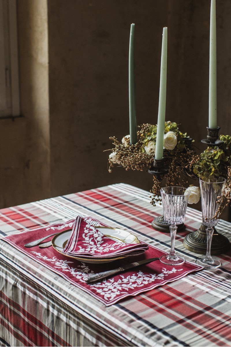 Un set de table en pur lin richement brodé d'un délicat motif floral en lurex chatoyant. Le set de table Venaria est fabriqué en lin lavé doux et enrichi d'une précieuse broderie florale. Le set de table Venaria est le complément parfait d'une table dressée avec la nappe et les serviettes de la même ligne. Il peut également être utilisé seul pour ne pas cacher votre belle table.