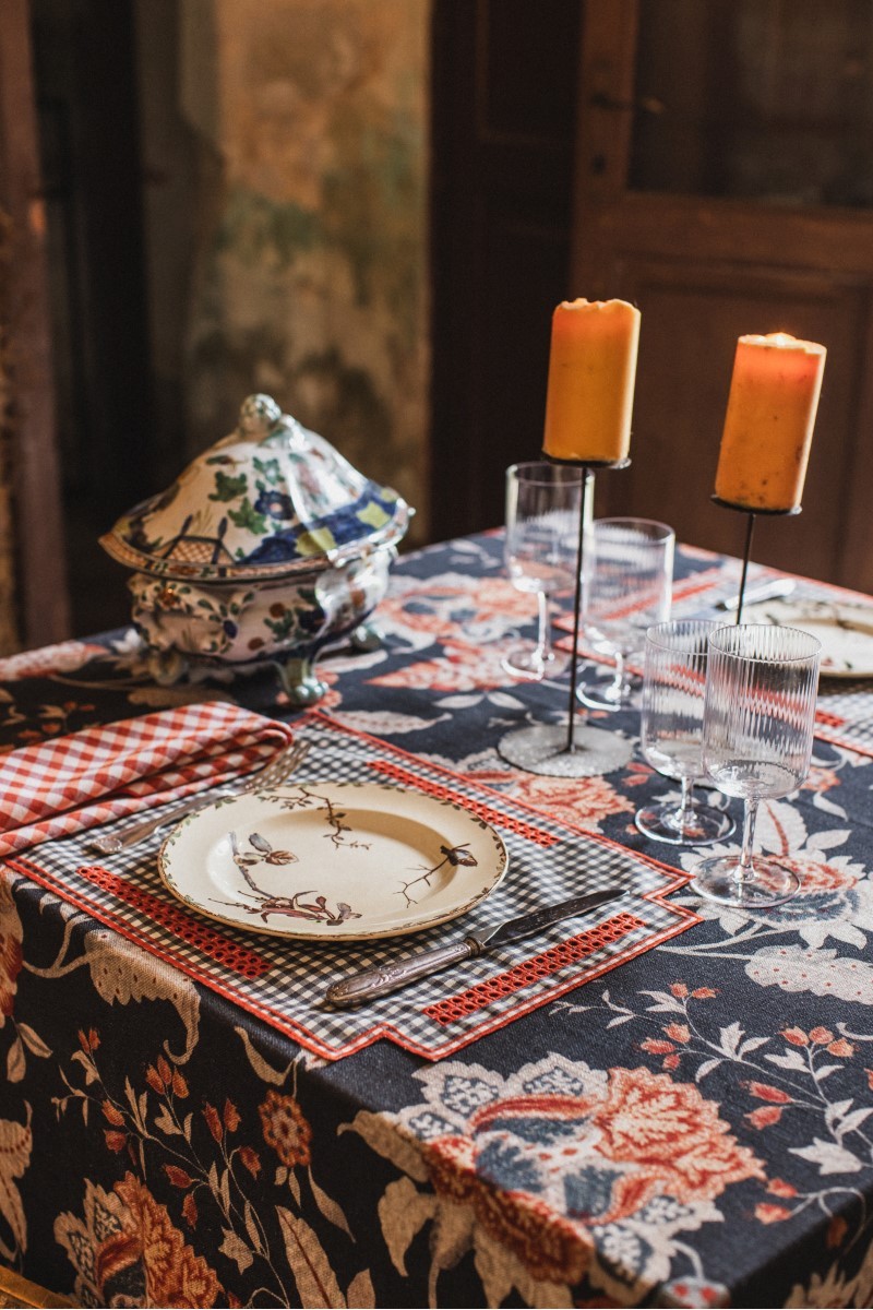 Les nappes Filo en tissu naturel sont fabriquées dans une large gamme de tissus unis et à motifs et dans une très large gamme de tailles pour couvrir élégamment toutes les tables, même les plus grandes. Vous pouvez choisir de les utiliser comme nappes ou même comme sous-nappes en combinaison avec l'une de nos nappes à bordures plus élaborées pour un effet esthétique maximal. Fabriquées à la main en Italie à partir de tissus fins, elles sont finies avec un élégant point de broderie en cordon de couleur contrastante et sont idéales pour dresser la table d'une manière moderne et élégante. Vous pouvez l'associer à des serviettes de table assorties ou créer votre propre combinaison, choisissez parmi notre large gamme pour créer votre propre combinaison. La nappe Filo, comme toutes nos nappes, est également coupée et produite à la demande. La nappe Filo est également disponible en version antitache.