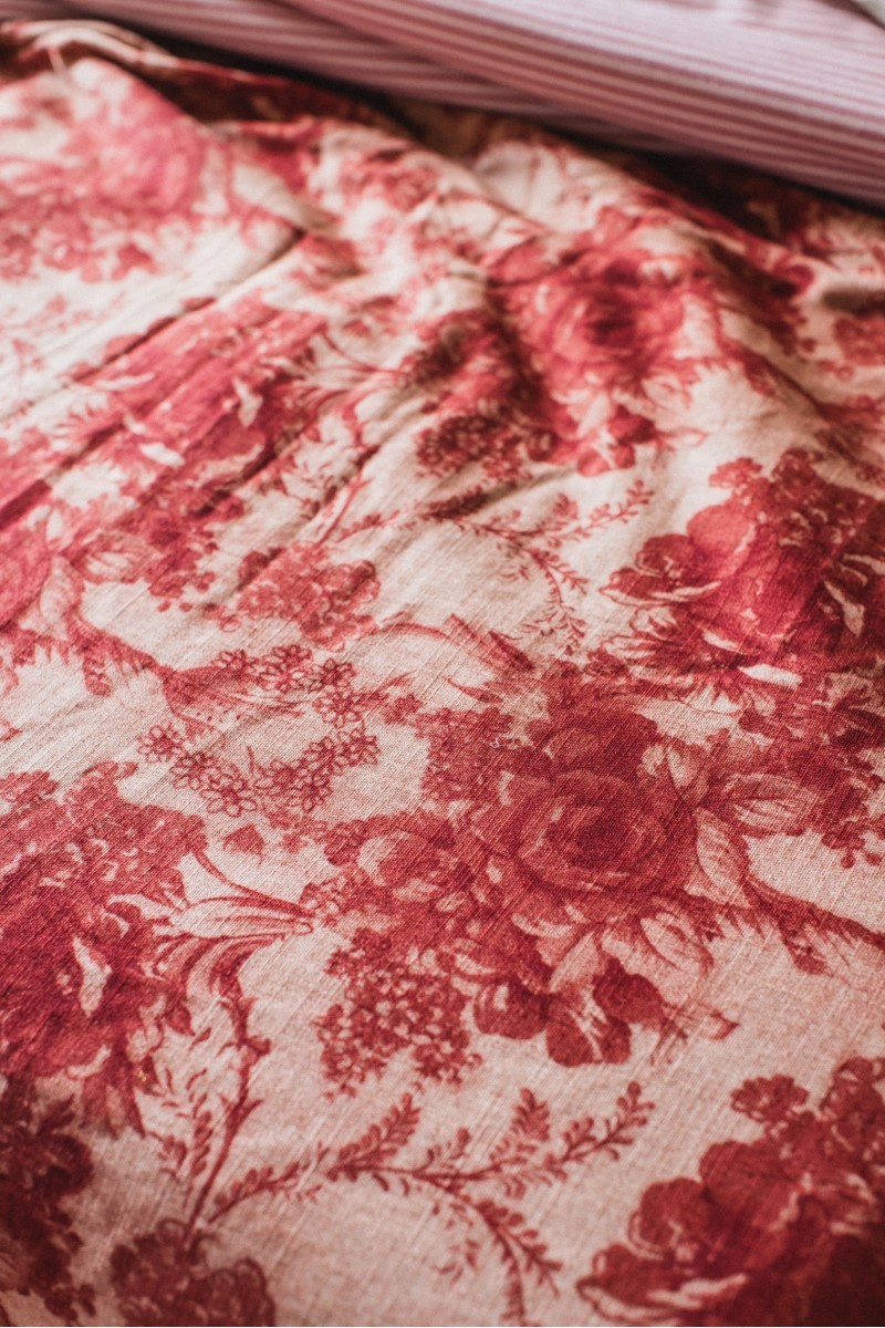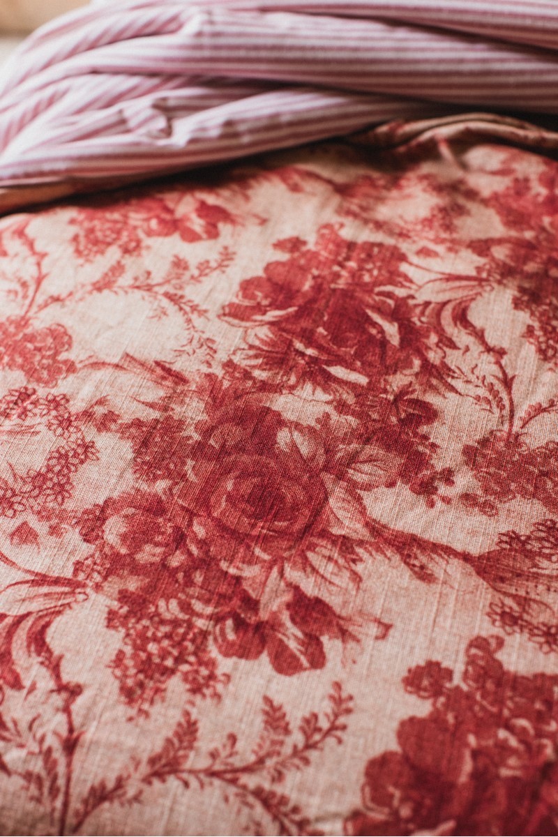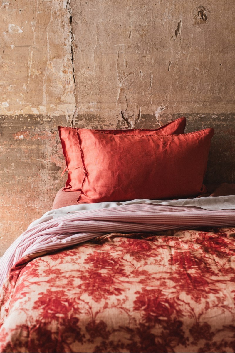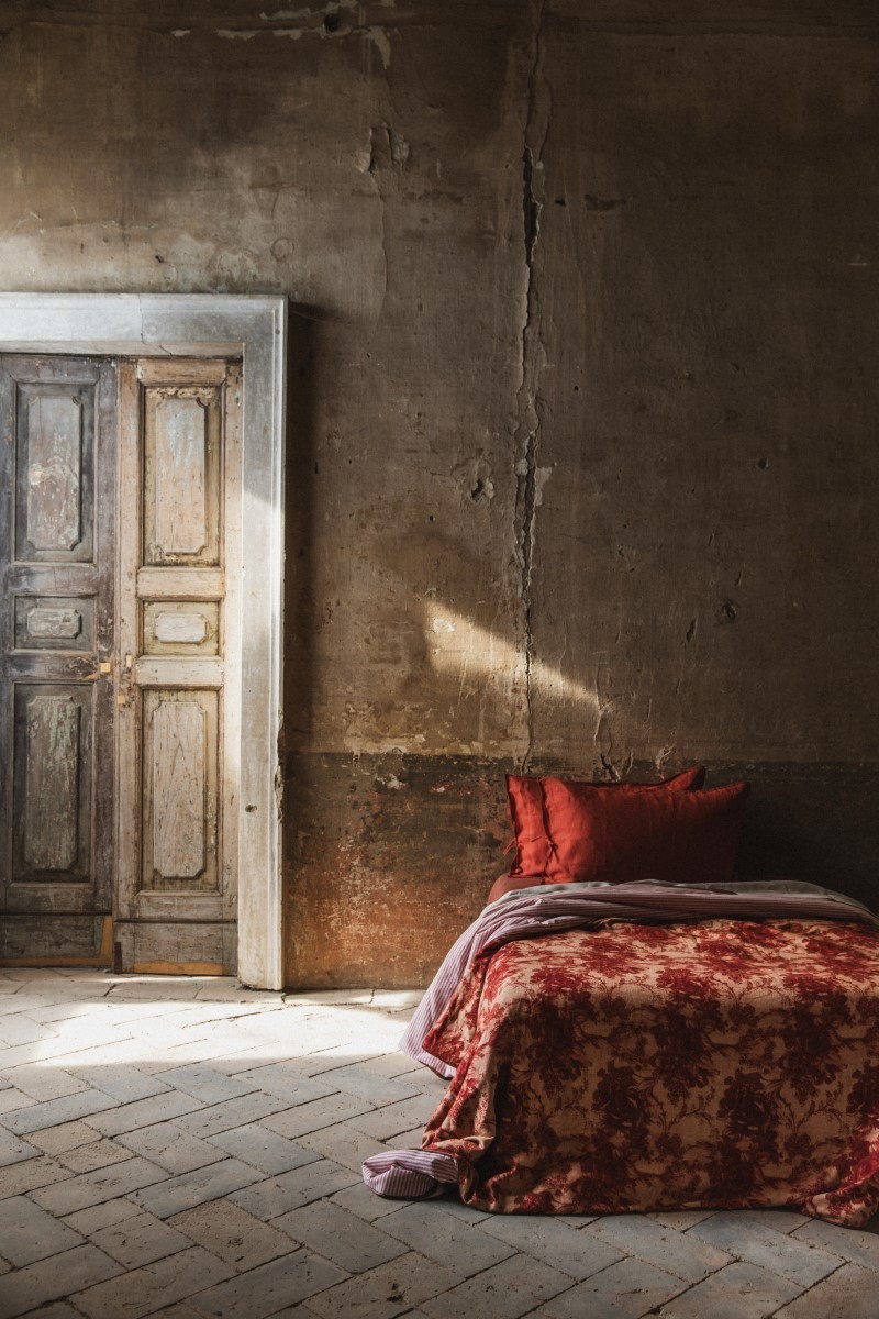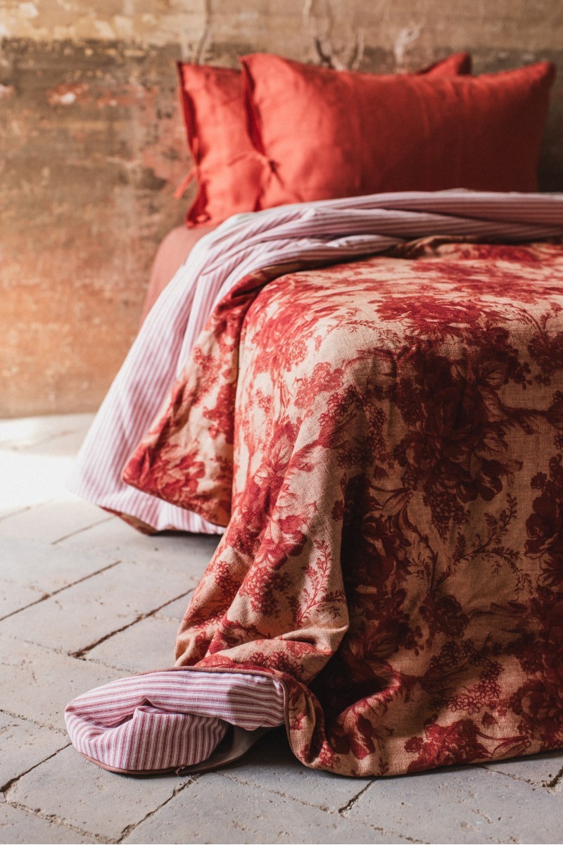 Un nuage de douceur à la fois chaud et léger, notre couvre-lit réversible, une face lin-viscose et l'autre en coton mélangé. Disponible en deux grammages pour la mi-saison 120 grammes ou pour l'hiver 200 grammes. Changez l'aspect de votre lit d'un geste en tournant le couvre-lit du côté que vous préférez. Associez-le aux draps et aux taies d'oreiller de la collection Borgo delle Tovaglie. Complétez-le avec des coussins décoratifs, comme nous le suggérons dans nos mises en scène. Votre lit est votre royaume des rêves.