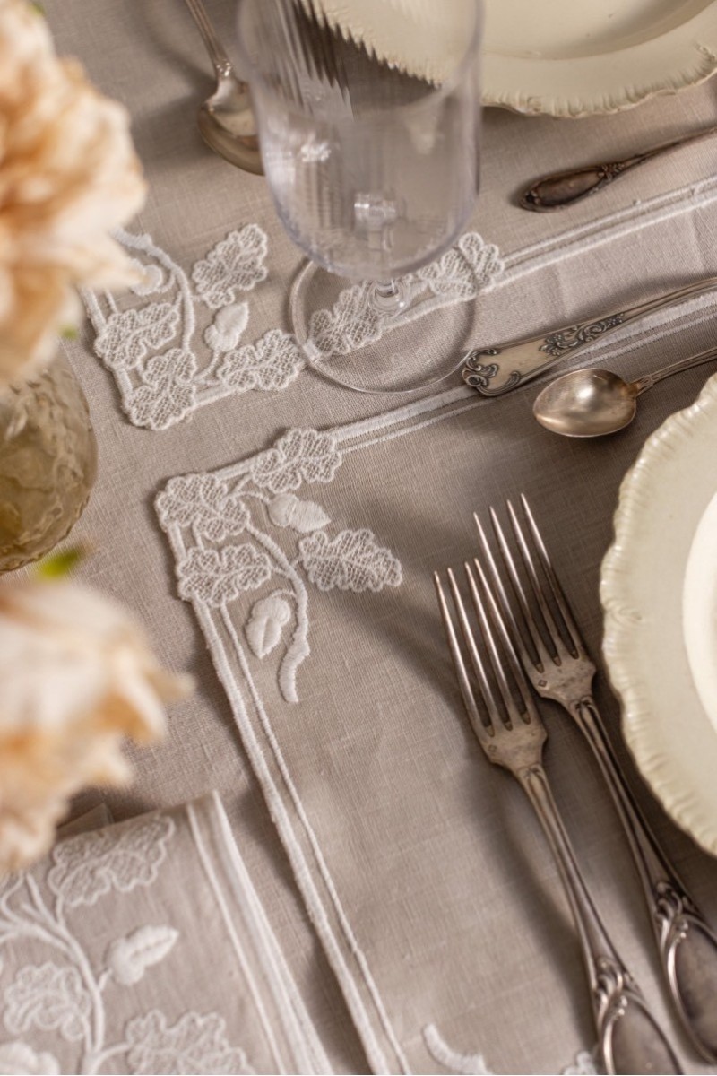 Set de table en pur lin traité anti-taches, brodé en contraste de couleur sur le bord. Parfait pour dresser avec élégance une table de petit-déjeuner ou de déjeuner, mais également très élégant superposé à une nappe Amalfi dont le bord est richement brodé du même motif, pour dresser une table adaptée à tout événement. Complétez votre table avec les serviettes assorties. La nappe Amalfi est très facile à nettoyer grâce à notre traitement anti-taches spécial.
