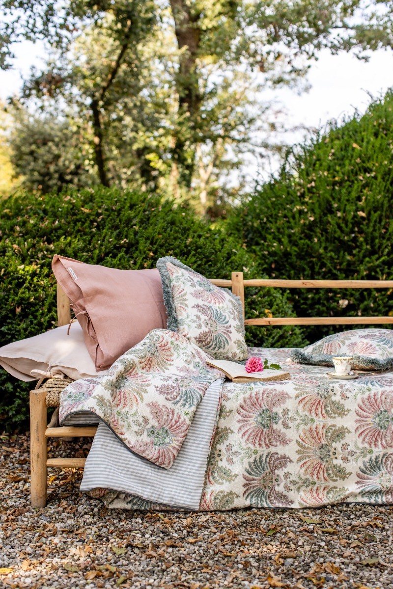 Un nuage de douceur à la fois chaud et léger, notre couvre-lit réversible, une face lin-viscose et l'autre en coton mélangé. Disponible en deux grammages pour la mi-saison 120 grammes ou pour l'hiver 200 grammes. Changez l'aspect de votre lit d'un geste en tournant le couvre-lit du côté que vous préférez. Associez-le aux draps et aux taies d'oreiller de la collection Borgo delle Tovaglie. Complétez-le avec des coussins décoratifs, comme nous le suggérons dans nos mises en scène. Votre lit est votre royaume des rêves.