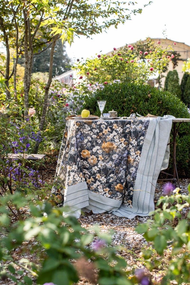 La nappe Sfogliatella est réalisée avec un magnifique bord à quatre volants en gaze de lin, chacun fini par une élégante broderie au point cordon. Cette nappe est le fruit d’un travail artisanal long et méticuleux.