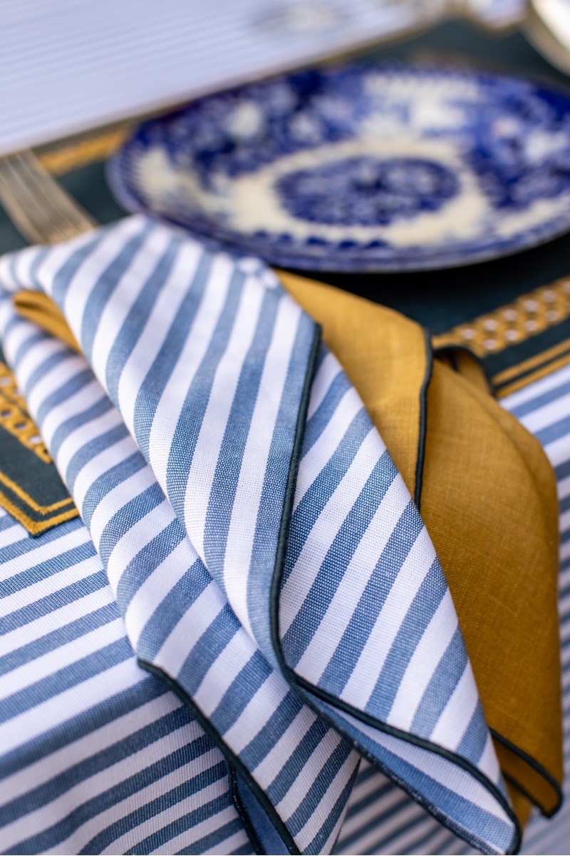 Serviette de table élégante avec une rangée de cordons brodés dans une couleur contrastée. Fabriquée à la main en Italie dans notre atelier de tailleur de Bologne, elle est disponible dans une large gamme de couleurs assorties à nos nappes. La serviette est le détail synonyme de soin pour la belle table. Les serviettes Borgo Delle Tovaglie sont le complément indispensable d'une table élégante et colorée : amusez-vous à les assortir en créant des motifs et des jeux de couleurs en harmonie avec nos nappes, selon votre goût. Jouez à mélanger les différentes lignes et couleurs pour créer votre propre proposition et surprendre vos invités avec des combinaisons toujours différentes.