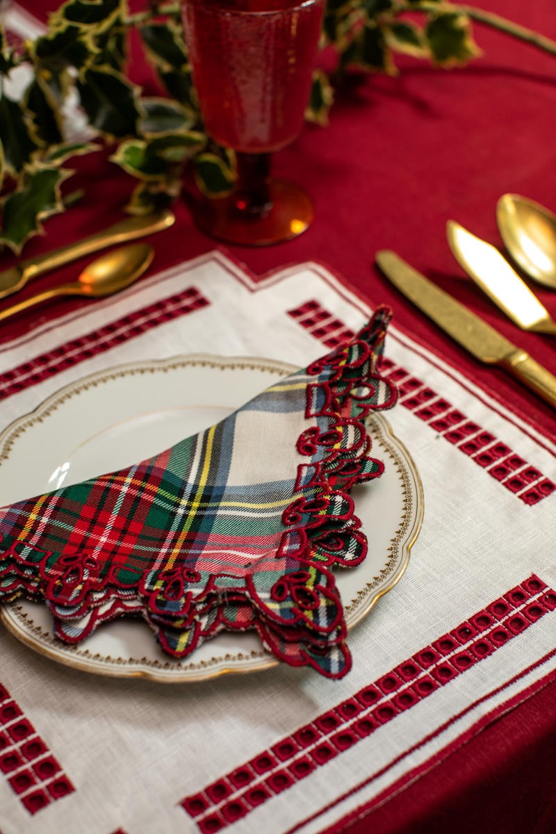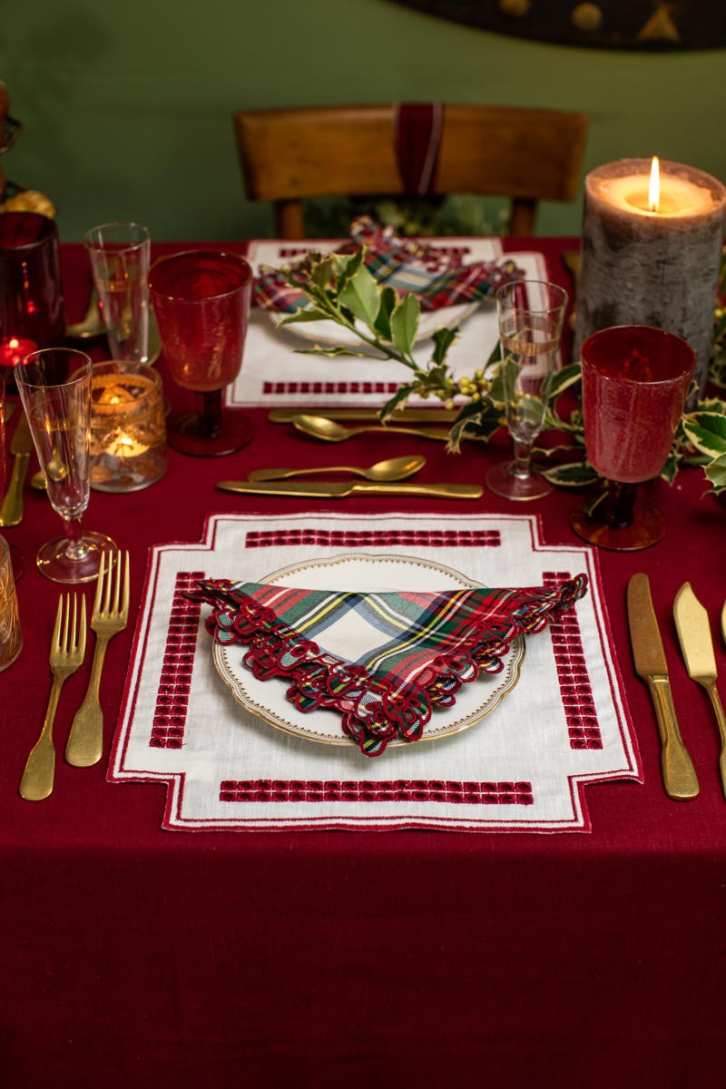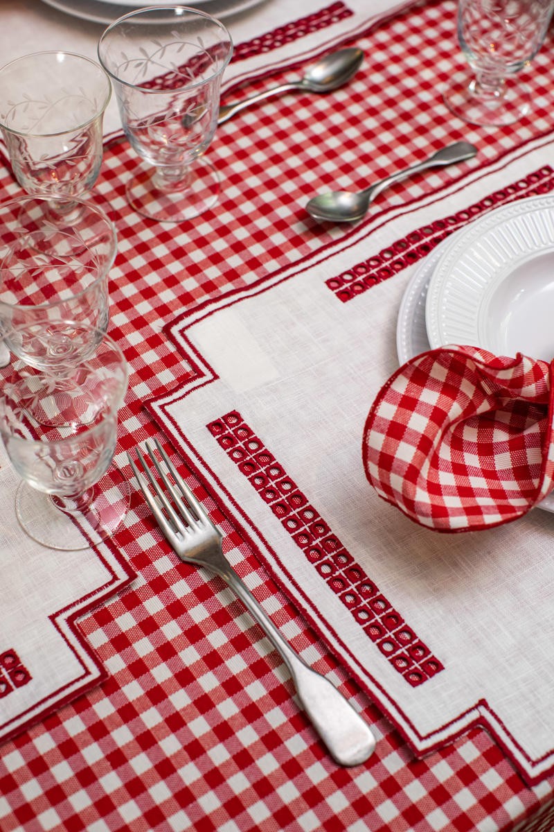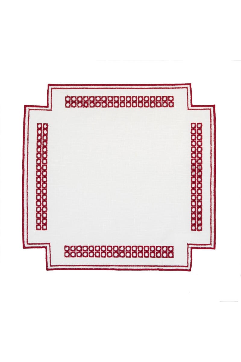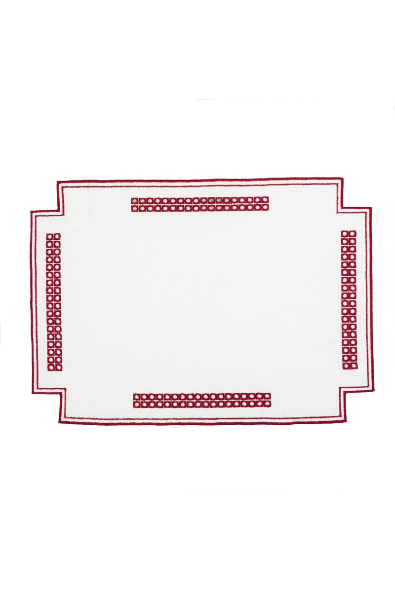 Elegante tovaglietta antimacchia ricamata ad intaglio a contrasto di colore sul profilo. Perfetta per apparecchiare con eleganza la tavola della colazione o del pranzo, anche in abbinamento ad una tovaglia per creare sempre nuovi allestimenti. La tovaglietta è praticissima da pulire perché dotata del nostro speciale trattamento antimacchia.